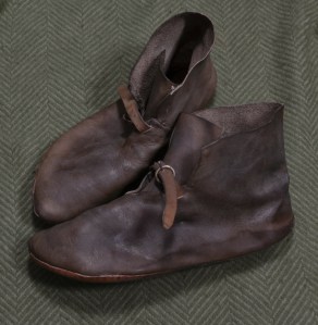 All shoes are hand stitched for your foot using patterns based on finds. Although the photos currently included here only cover the medieval period, I can make shoes from Roman to the late fifteenth century. Prices start from £110 for adult shoes. I do also make affordable children’s shoes, as detailed below.